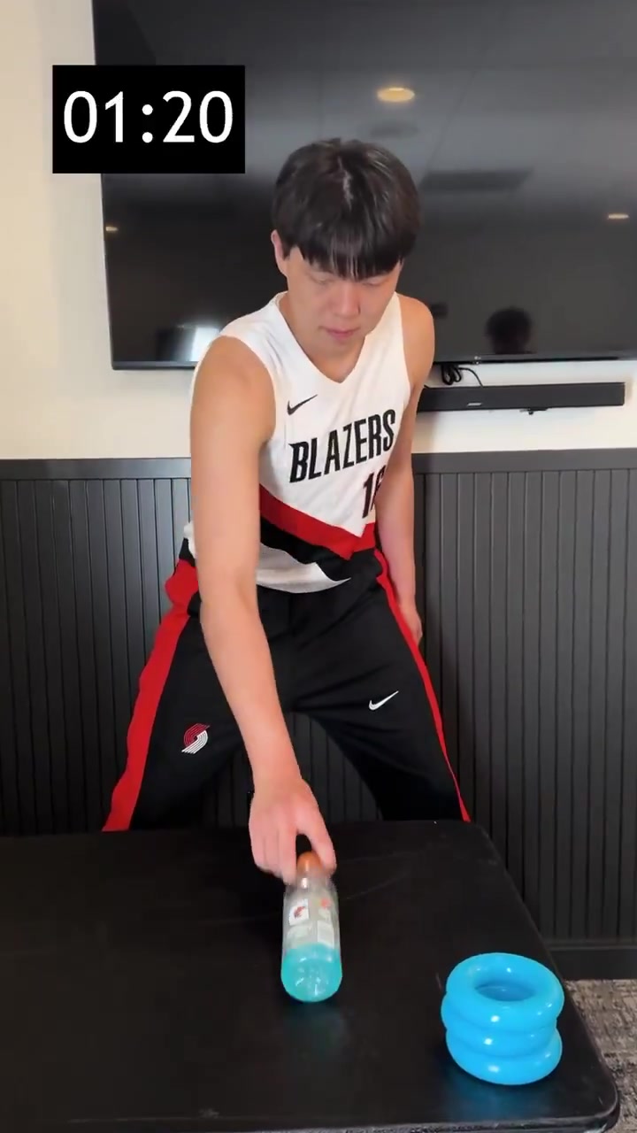 2025-10-22 17:58:49杨瀚森玩翻瓶子&套圈&扔乒乓球游戏 展现运动天赋&细腻手感