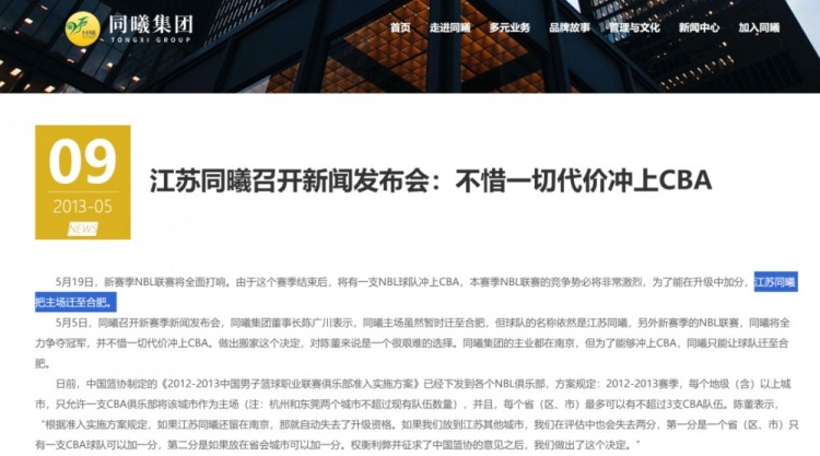渴望晋级CBA的同曦俱乐部每分必争,最终只能忍痛搬家到相邻省份安徽的省会合肥。但在陈广川的力主下,球队仍命名为“江苏同曦”而非“安徽同曦”。俱乐部更对球迷做出承诺:“我们同曦集团的大本营在南京,我们的球队一定会杀回来的。”显然,主场迁出江苏省,不过是同曦为了打CBA的权宜之计。