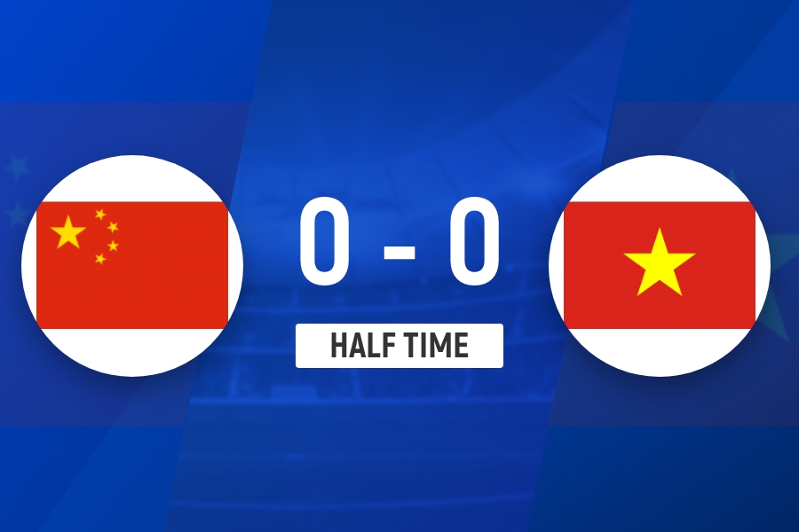 上半场比赛结束,U22国足0-0越南U22。